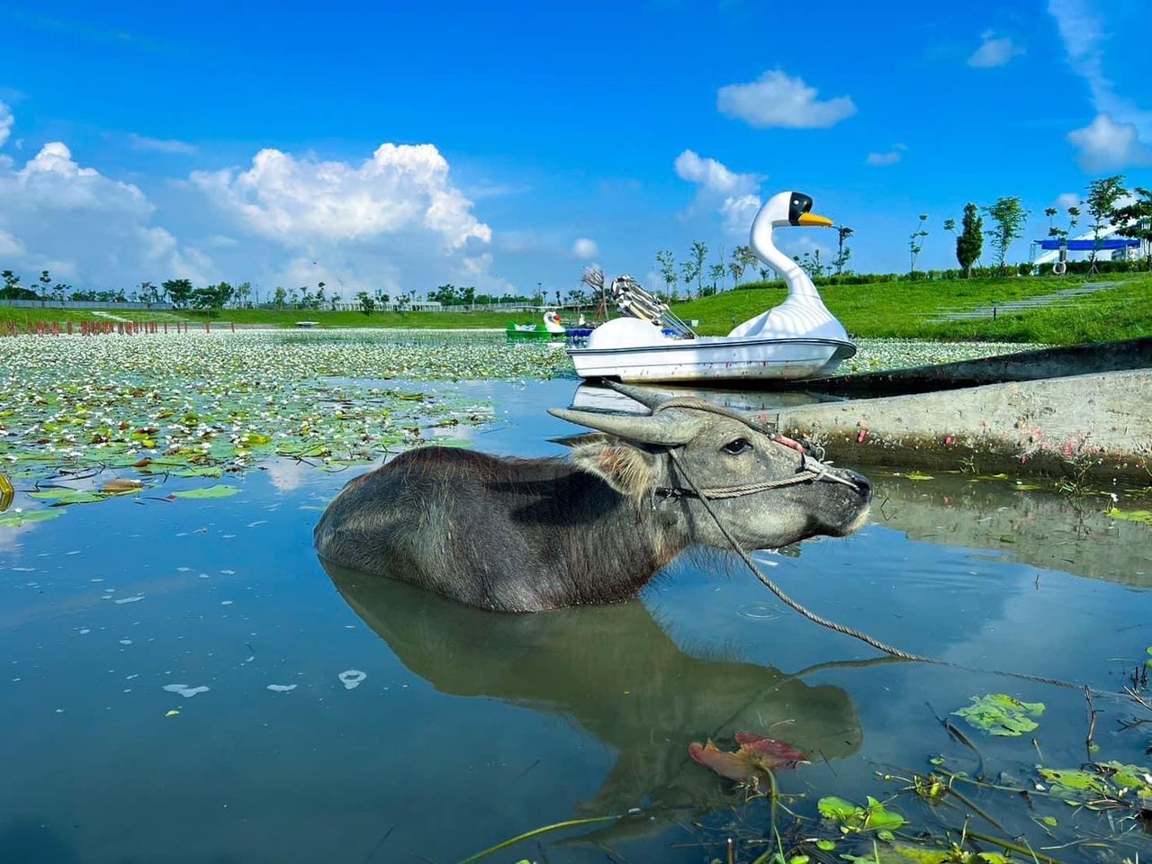 園區內有峇厘島風的發呆亭、荷花生態池、透明玻璃橋等,非常適合拍照打卡,園內還有水牛、迷你馬、白鵝等可愛小動物,放鬆遊玩也能促進交流互動。