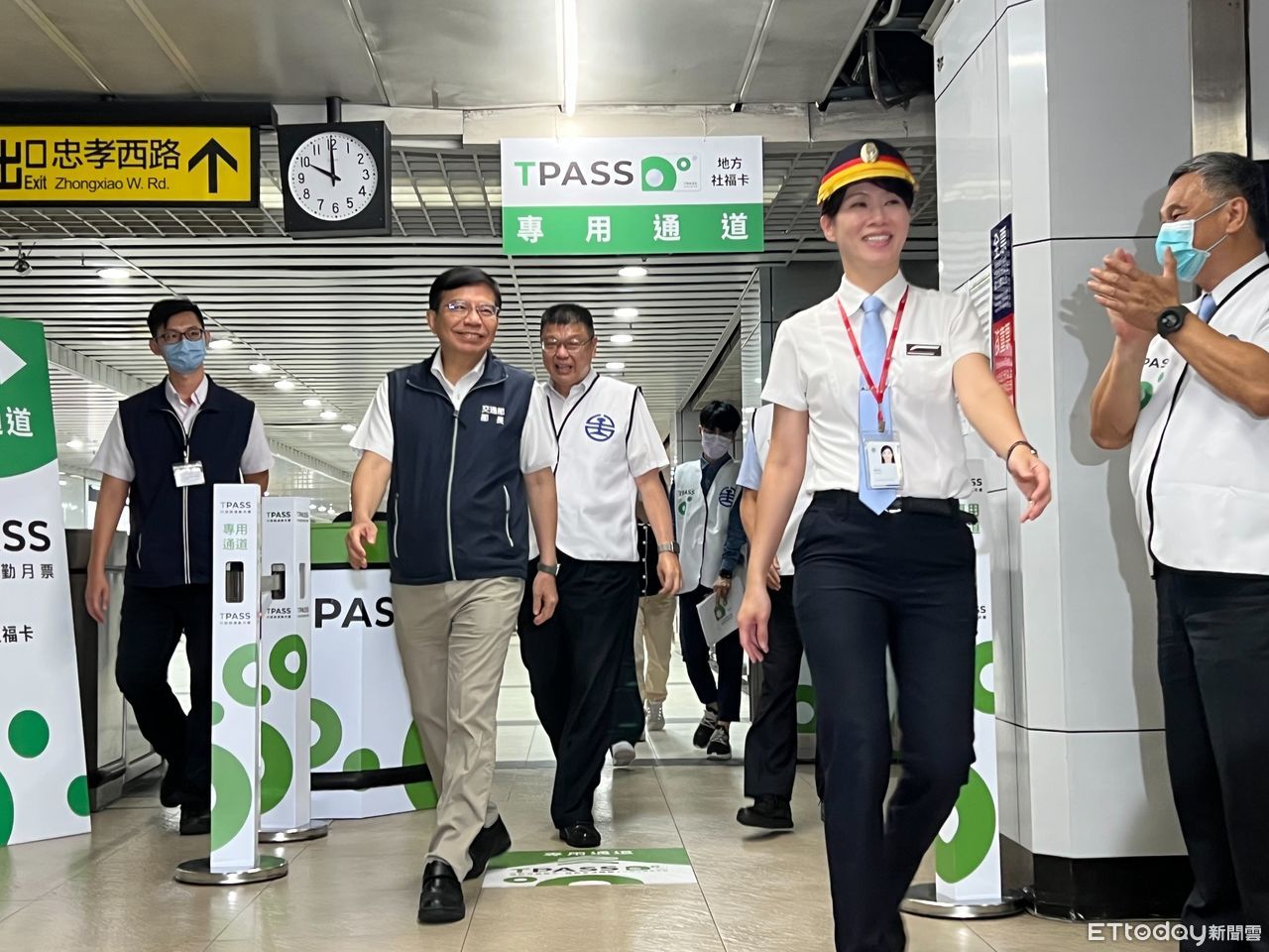 ▲台鐵今進行通勤月票使用狀況模擬演練,交通部長王國材前往視察。(圖/記者李姿慧攝)