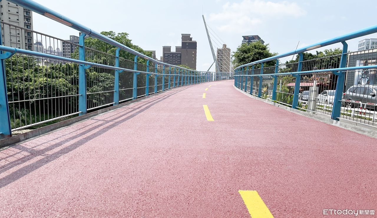 桃園市蘆竹區知名的南崁溪印象大橋3年前啟用後,由於沿南崁溪沿岸設置,景色宜人一度成為地方知名打卡熱點,但後來鋪設的PU跑道因日曬雨淋導致多處隆起變形,引發市民批評;市府今年4月間封橋進行橋面改善工程日前完工,趕在暑假前今(30)日重新開放。