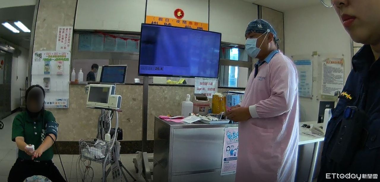 ▲市警永康分局復興派出所員警,以警車鳴警笛開道,在2分鐘內迅速馳抵醫院讓王女及時就醫治療,王女十分感激警方大力協助。(圖/記者林悅翻攝,下同)