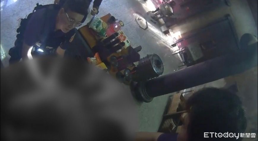 ▲酒空男闖入宮廟、又攻擊員警,在廟內大鬧一通,員警鳴槍示警將人逮捕。(圖/記者王兆麟翻攝,下同)