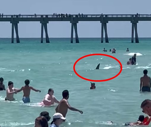 到了3日下午,佛州納瓦拉海灘(Navarre Beach)出現一隻大鯊魚,當時水中還有多名泳客,當眾人發現鯊魚魚鰭在水中徘迴時,紛紛離開水中回到岸上,沙灘上遊客急著大喊「快上岸」、「快一點」。