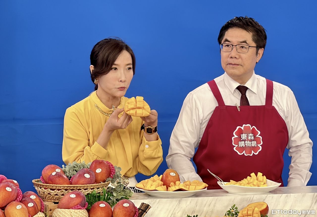 ▲台南市長黃偉哲6日特北上參加東森購物平台直播節目,向全國消費者極力推銷台南愛文芒果。(圖/記者林悅翻攝,下同)