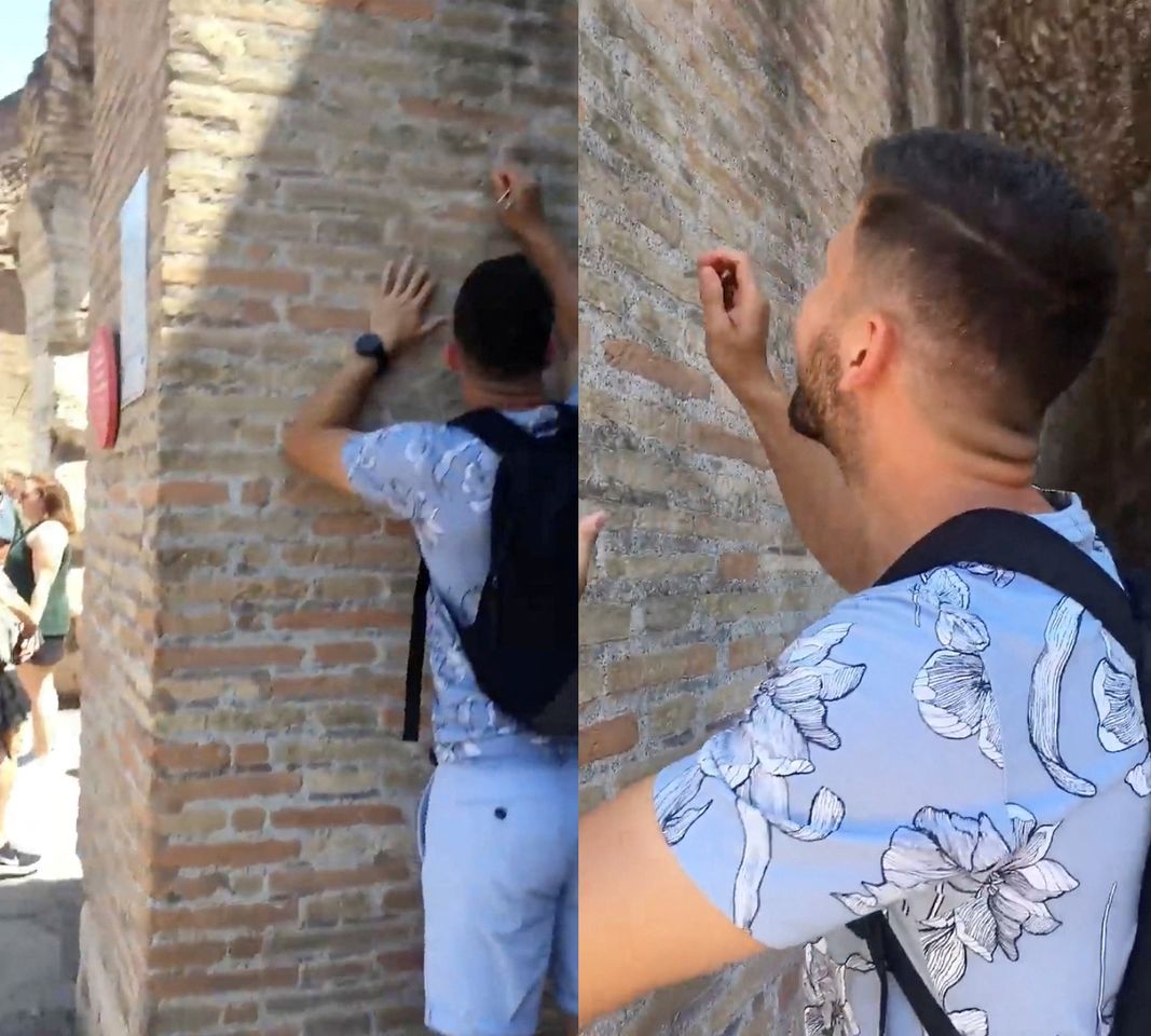 義大利羅馬競技場是世界七大奇景之一,擁有長達2000年歷史的壯觀建築。然而,31歲的英國健身教練迪米特羅夫(Ivan Dimitrov)竟拿著一把鑰匙把自己和女友的名字刻在牆上。義大利檢方正進行調查之際,他寫了一封道歉信表示,他先前並不知道羅馬競技場的歷史如此悠久。