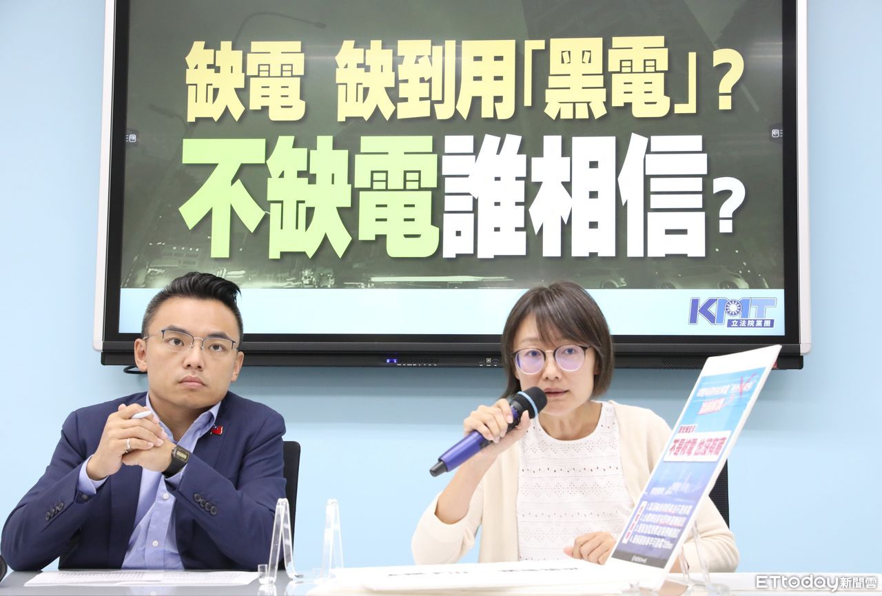 國民黨立法院黨團今(7日)舉行記者會,表示台電不但缺電,還使用輕柴油發電,偷偷摸摸使用核電廠內的「氣渦輪機」機組,每度電成本至少是10元以上,卻未在電業年報上公告,形同「黑電」。藍委吳怡玎指出,昨天下午2時,尖峰備轉容量為「綠燈」,但在台電各機組發電量網站上,出現核二機組淨發電量達40G/W,這代表核二備用機組被啟動了。