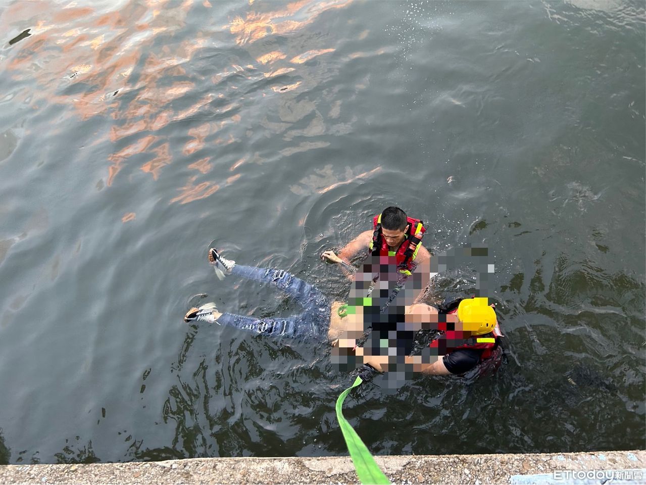 ▲台南市中西區府前路二段運河內,10日清晨發生年輕女子落水,警消將溺水的吳姓女子搶救上岸,但人已無生命跡象,經送醫急救已恢復呼吸心跳。(圖/記者林悅翻攝)