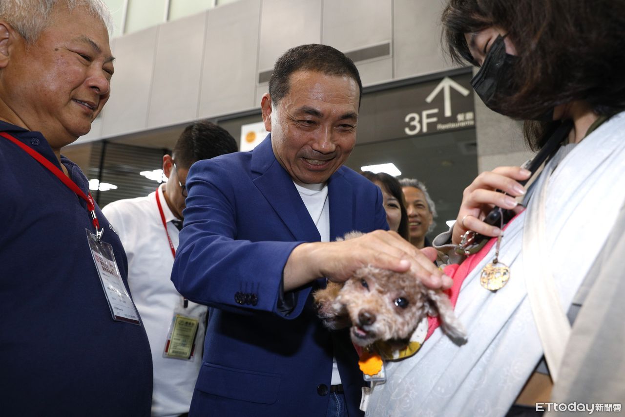 ▲國民黨總統參選人侯友宜7/10來到台北寵物用品展,除了採購家中愛犬所需用品外,也跟現場萌寵互動。(圖/記者湯興漢攝)