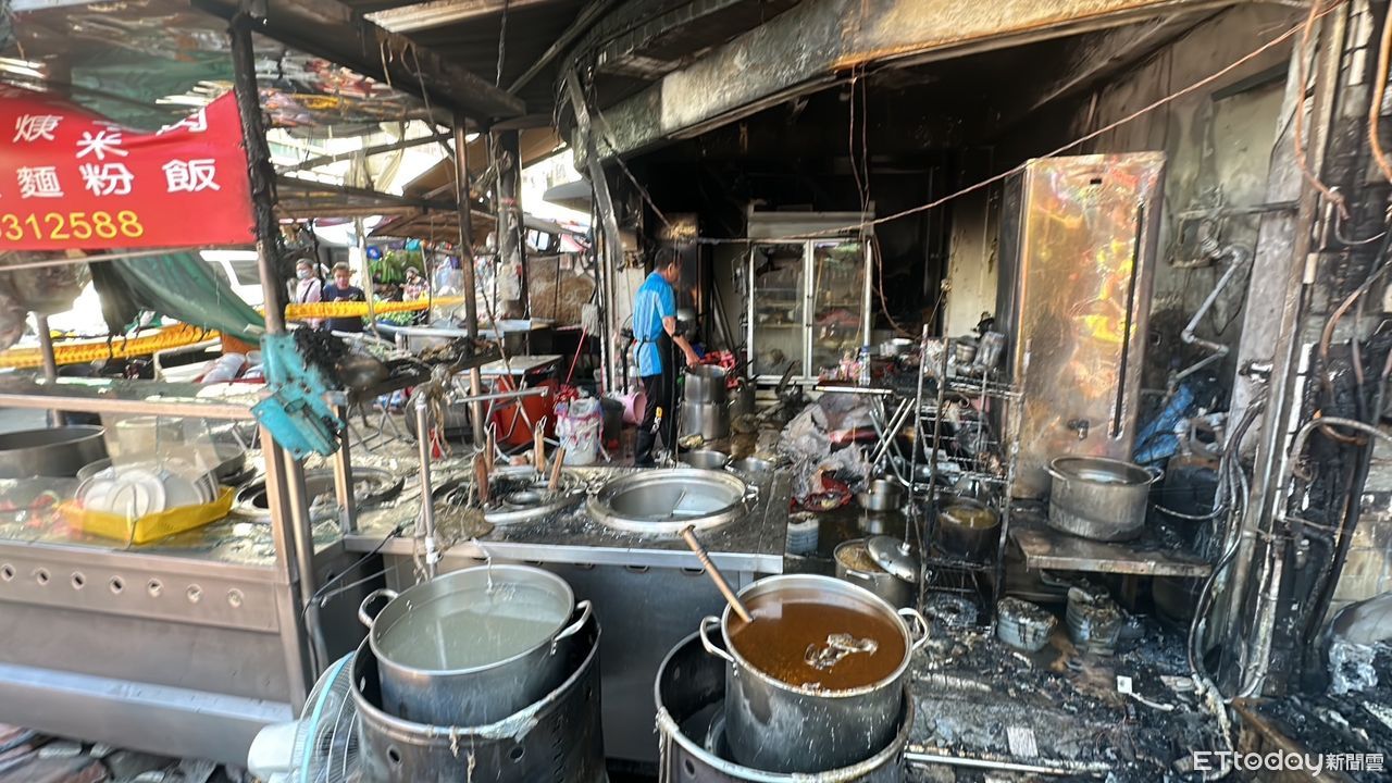▲台中霧峰市場內攤商「阿滿麵線」今日一早遇到嚴重火警,攤商全被燒毀。(圖/記者許權毅攝,下同)