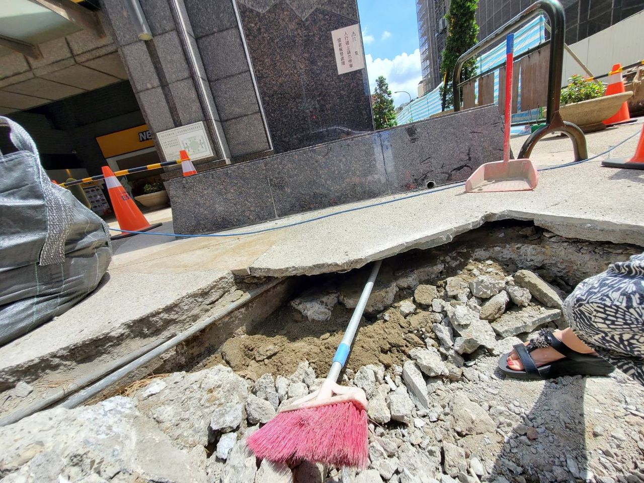 ▲竹北天坑周邊居民說,昨日勝利一路的人行道開挖,又發現新的土壤流失,對上市公所發布的結果,實在很擔心。(圖/讀者提供)