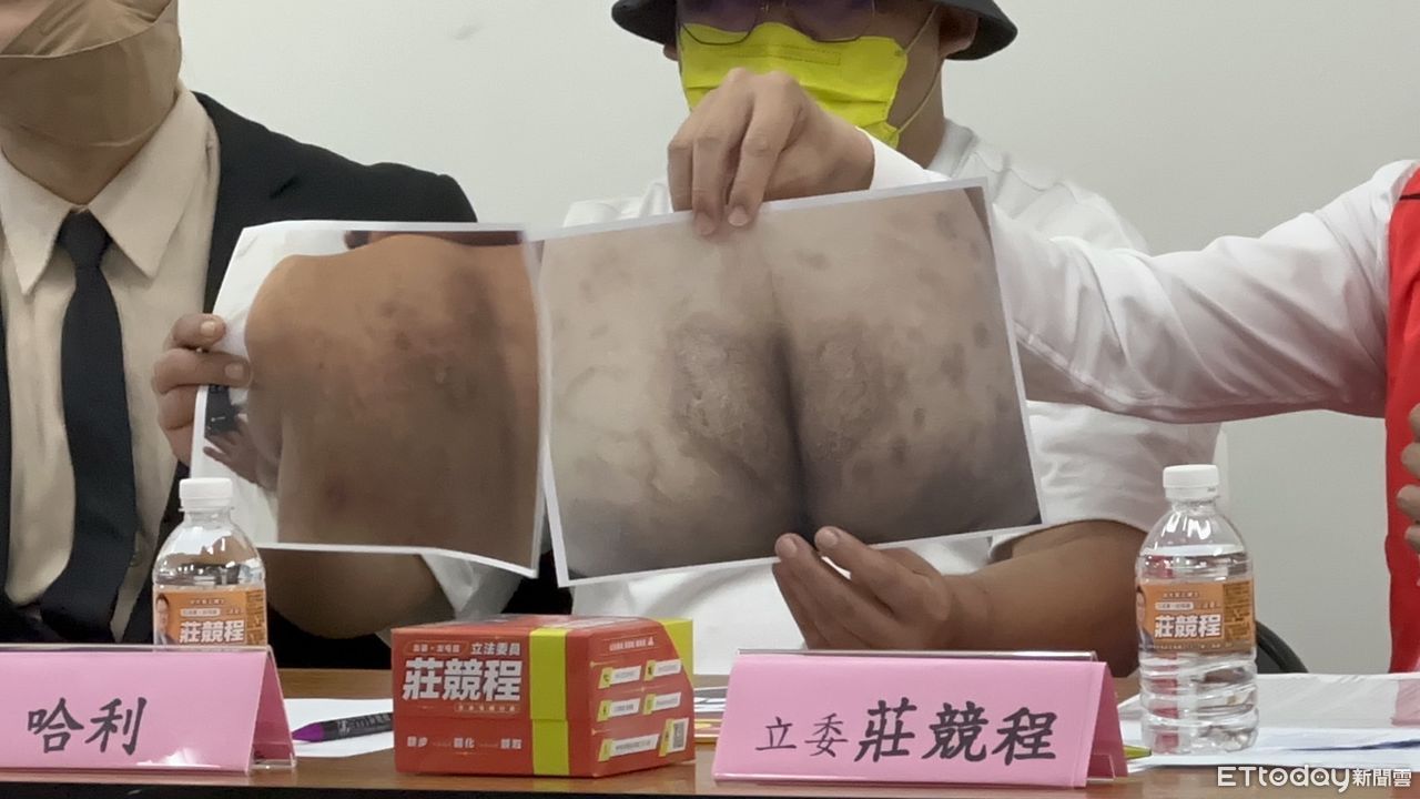 哈利在記者會上出示他手腕遭上銬的傷口,還有手臂被火燒掉一塊皮,立委莊敬呈也拿出哈利臀部、背部遭到凌虐的照片,怵目驚心的傷痕,都顯示人蛇集團的狠毒。
