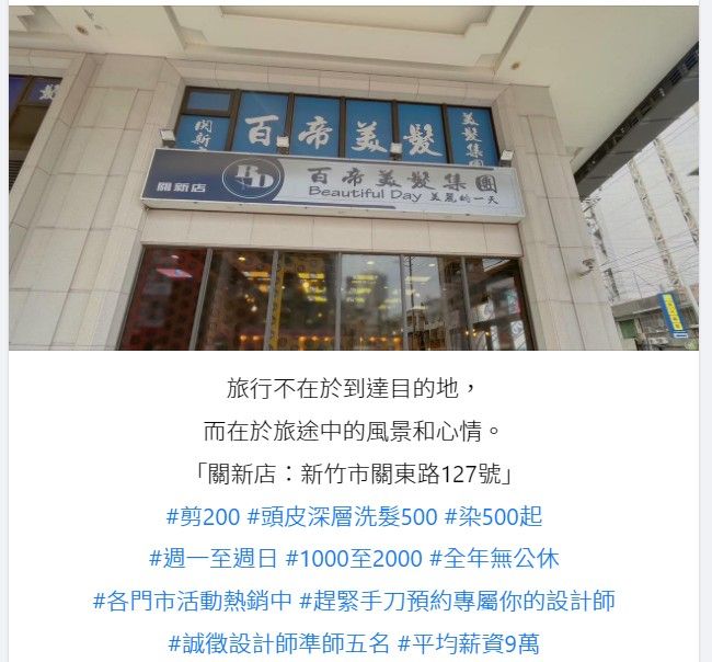 ▲新竹百元剪髮連鎖店「百帝美髮」驚傳倒閉。(圖/翻攝臉書,下同)