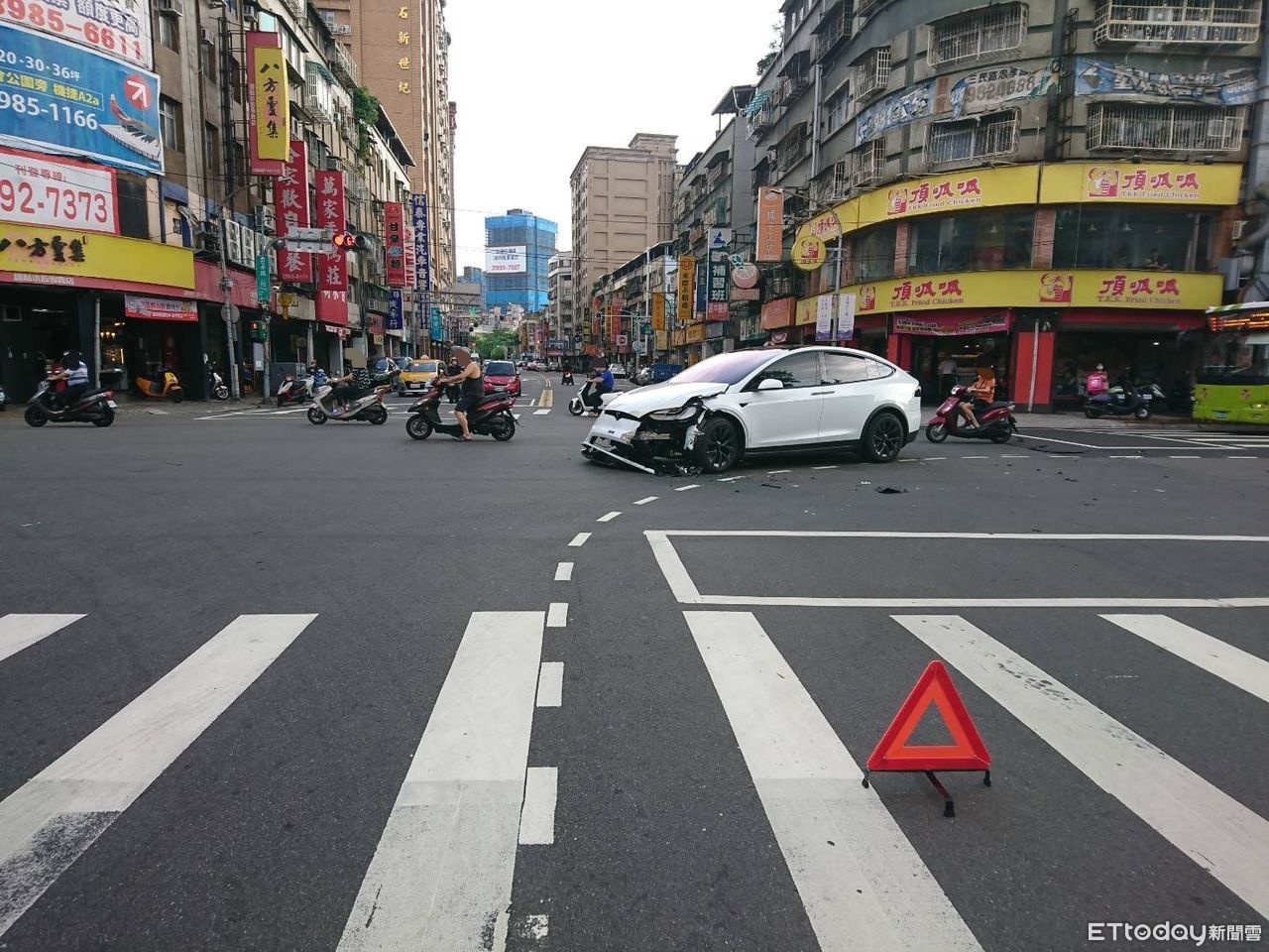 據了解,李姓男子向人租借一輛Tesla Model X電動汽車,昨天下午3時36分左右,行經新北市三重區中正北路準備左轉往忠孝路二段方向,疑未禮讓直行車先行,不慎與對向車道45歲葉男所駕駛的計程車發生碰撞,造成雙方車體皆有毀損。