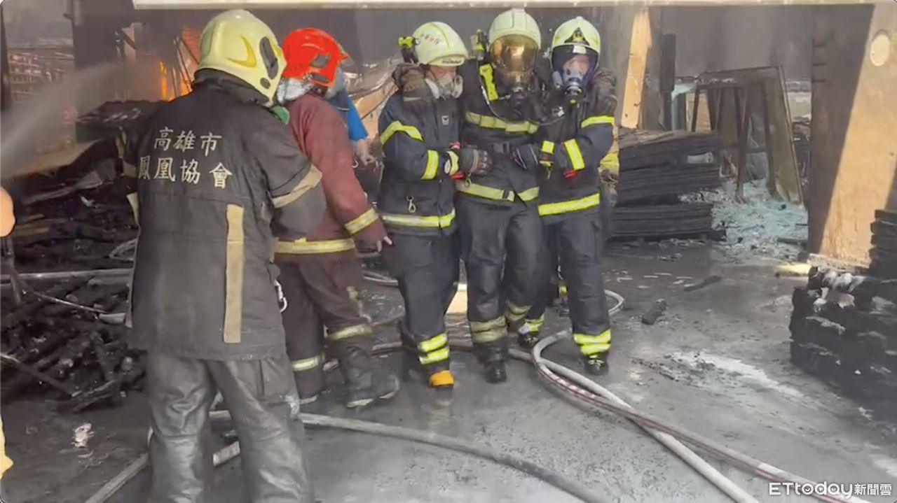 ▲一名警消在搶救過程當中,腳部受傷被扶出來送醫院 。(圖/記者吳奕靖翻攝)