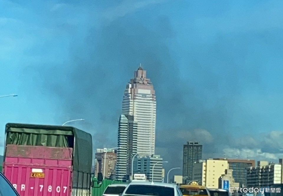 ▲台北市大安區信義路4段一處中華電信大樓10樓發生火警,民眾拍下黑煙漫天的畫面。(圖/民眾提供)
