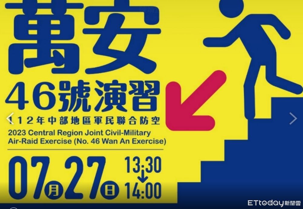今年萬安46號演習,中部地區將於27日下午1時30分至2時止,實施30分鐘警報傳遞與發放、疏散避難、交通等管制實作演練,解除警報後,台中市將分別在台鐵豐原轉運中心、豐原區南陽國小實施30分鐘戰災搶救及戰時災民收容救濟站開設演練,台中市警局籲請市民配合演習相關演練。
