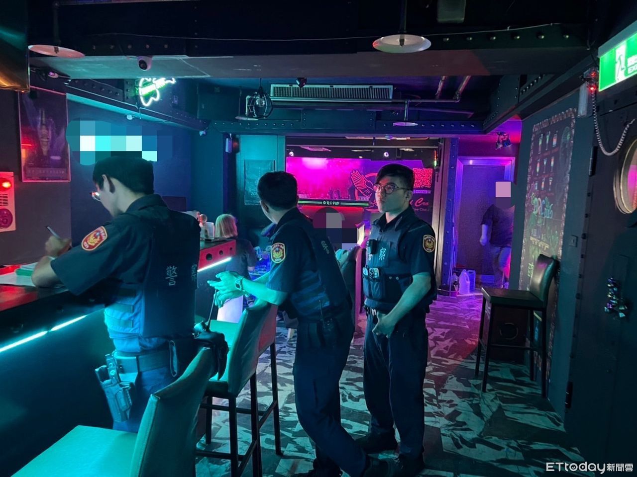 警方蒐證後於14日前往酒吧搜索,見店內多名顧客神情緊張,當場查獲兩嫌持有毒品咖啡包20餘包,共計90多公克,另查獲相關吸食毒品器具及持有刀械,分別依違反毒品危害防制條例及社會秩序維護法移送及裁處。當日因2位少女未上班,警方查扣店內監視器等相關證物,將林姓負責人依違反兒童及少年性剝削防制條例偵辦。
