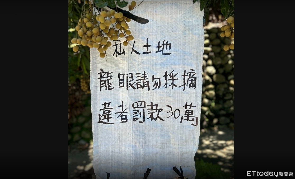 李天生表示,霧峰桐林北坑產業道路通往菁桐林生態園區及一線天風景區,進出往來遊客眾多,路旁龍眼結實纍纍,隨手可得,容易遭到不肖份子採摘,目前進入龍眼採收季節,農友再度懸掛出「私人土地、龍眼請勿採摘、違者罰款30萬元」警告標語,提醒路過民眾不要偷摘。