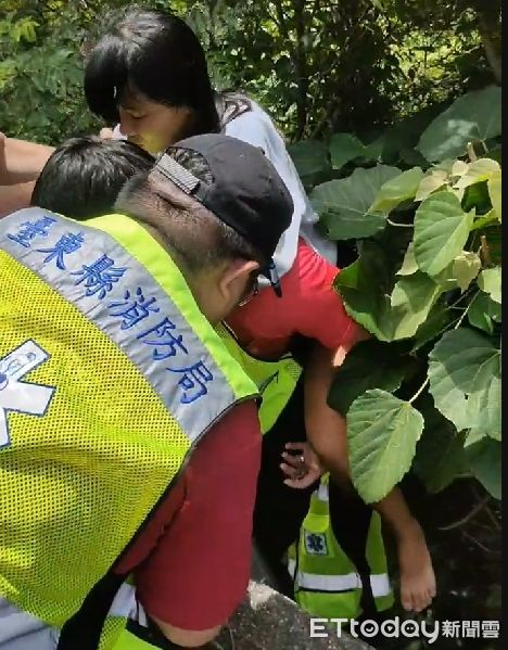 消防隊員趕抵後,先下到邊坡,黃姓女學生腿變形無法站立,隊員在初步包紮處置後,以人力揹負的方式,緩慢的將她揹上來,隨即後送台東市進行急救。