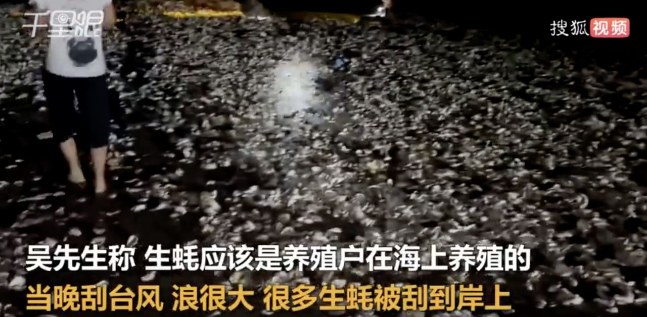 ▲颱風泰利登陸廣東前,將滿滿的海鮮衝到沙灘上。(圖/翻攝搜狐千里眼,下同)