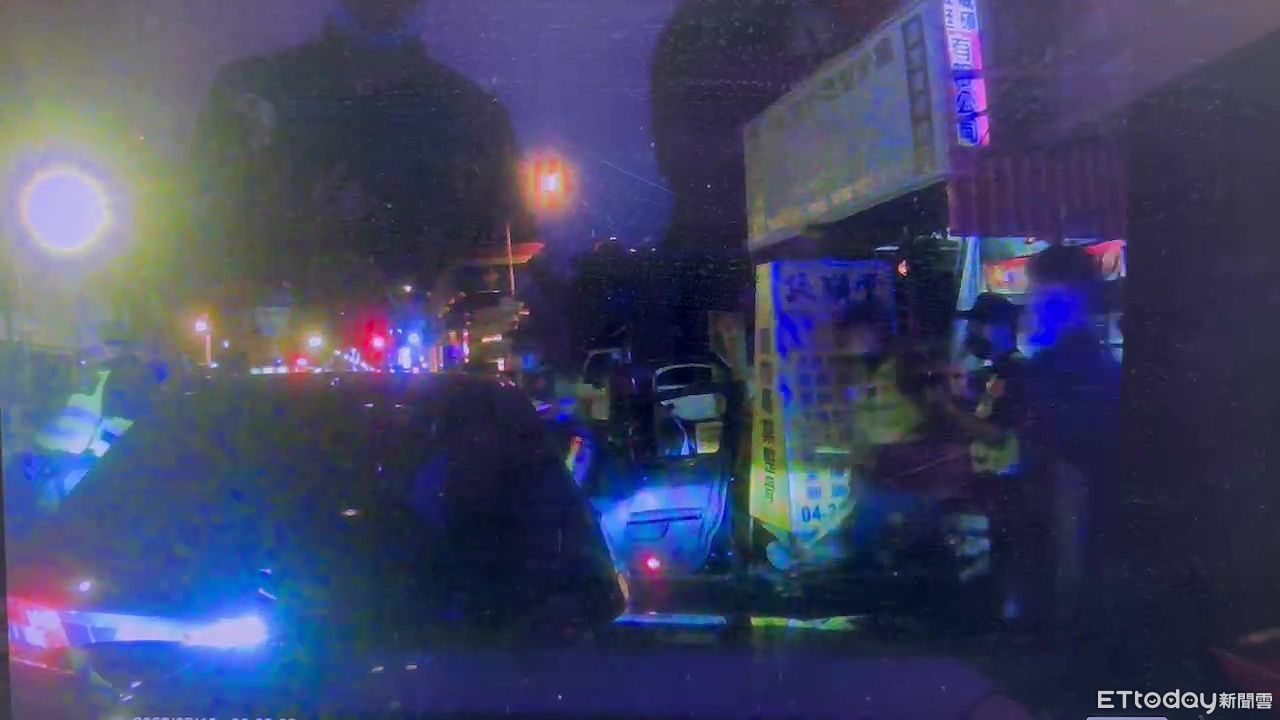 ▲台中一名陳男17日深夜跑到一處民宅尋仇,屋主傻眼表示,根本不認識對方,陳男拒檢衝撞警車,遭壓制逮捕。(圖/記者許權毅翻攝)