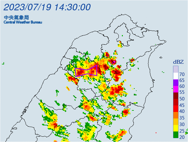 氣象局下午14時39分也對新竹縣發布大雷雨即時訊息,持續時間至15時45分;慎防劇烈降雨、雷擊,溪(河)水暴漲,坍方、落石、土石流,低窪地區慎防淹水,以及低能見度。