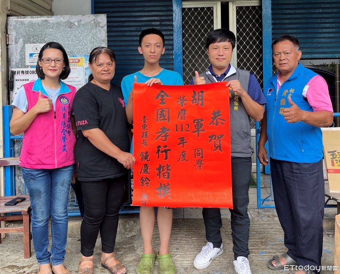 內政部112年舉辦的全國孝行獎選拔,各縣市政府提報代表,經內政部複選後公告,共有30名孝行楷模,台東縣獲表揚者有1位,是目前就讀關山工商的海端鄉胡軍同學,內政部預計於8月29日在金門縣金湖飯店舉辦表揚典禮,19日縣府民政處同仁前往家中頒發紅榜鼓勵。