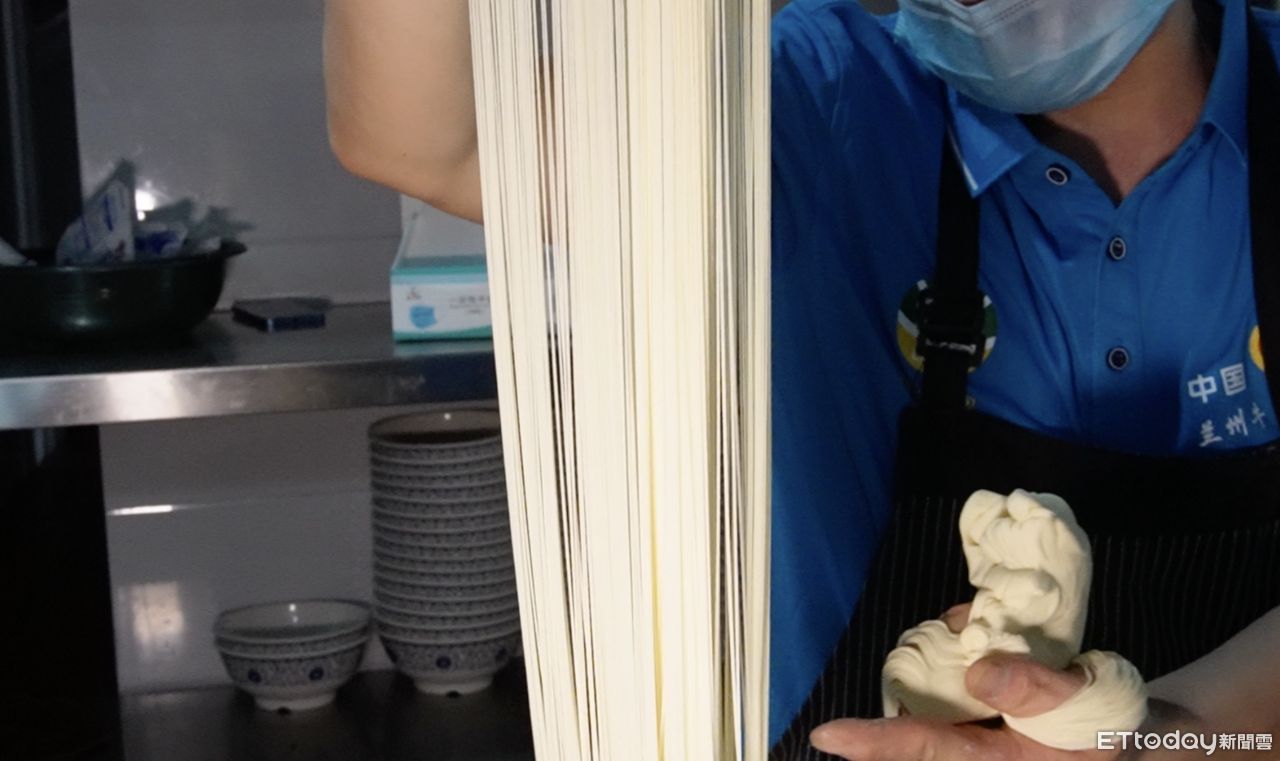 ▲▼ 拉麵師傅在展示拉出的細麵 。(圖/記者蔡儀潔攝)