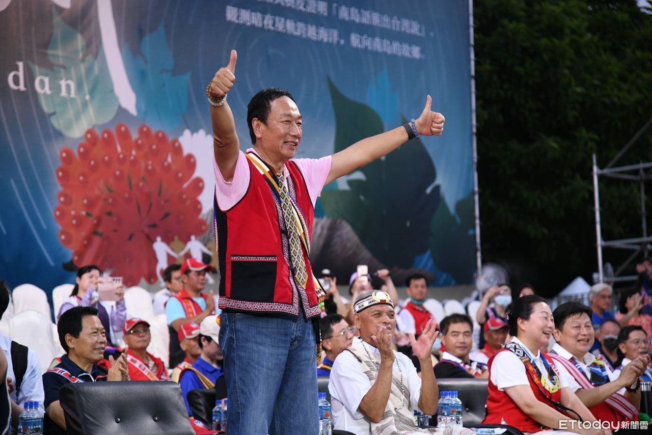 ▲郭台銘現身大會舞台秀幾句剛學會的各族族語向大家問候,引起現場熱烈掌聲。