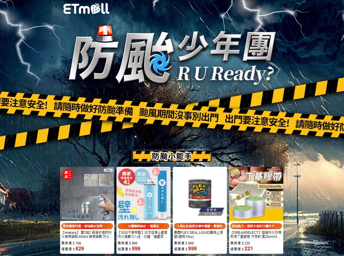 ▲東森購物推出防颱專區,讓民眾可隨時做好防颱防災準備。(圖/東森購物提供,以下同)