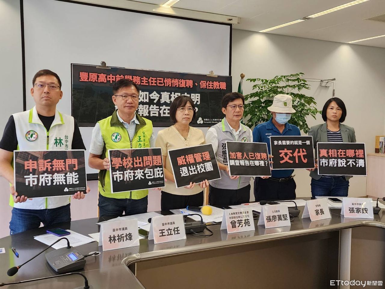 陪同家長開記者會的人本基金會表示,豐原高中早在6月13日就完成霸凌調查報告,並決議復聘前學務主任,針對學務主任的缺失部分,只給予記過處分;另外遭拔官的校長也已經恢復教職,可到其他學校任課。人本基金會怒轟,為何應受處分的人已經平安回校,家長卻至今連霸凌調查報告都拿不到?學生跟教育局不敢揭露的真象到底為何?