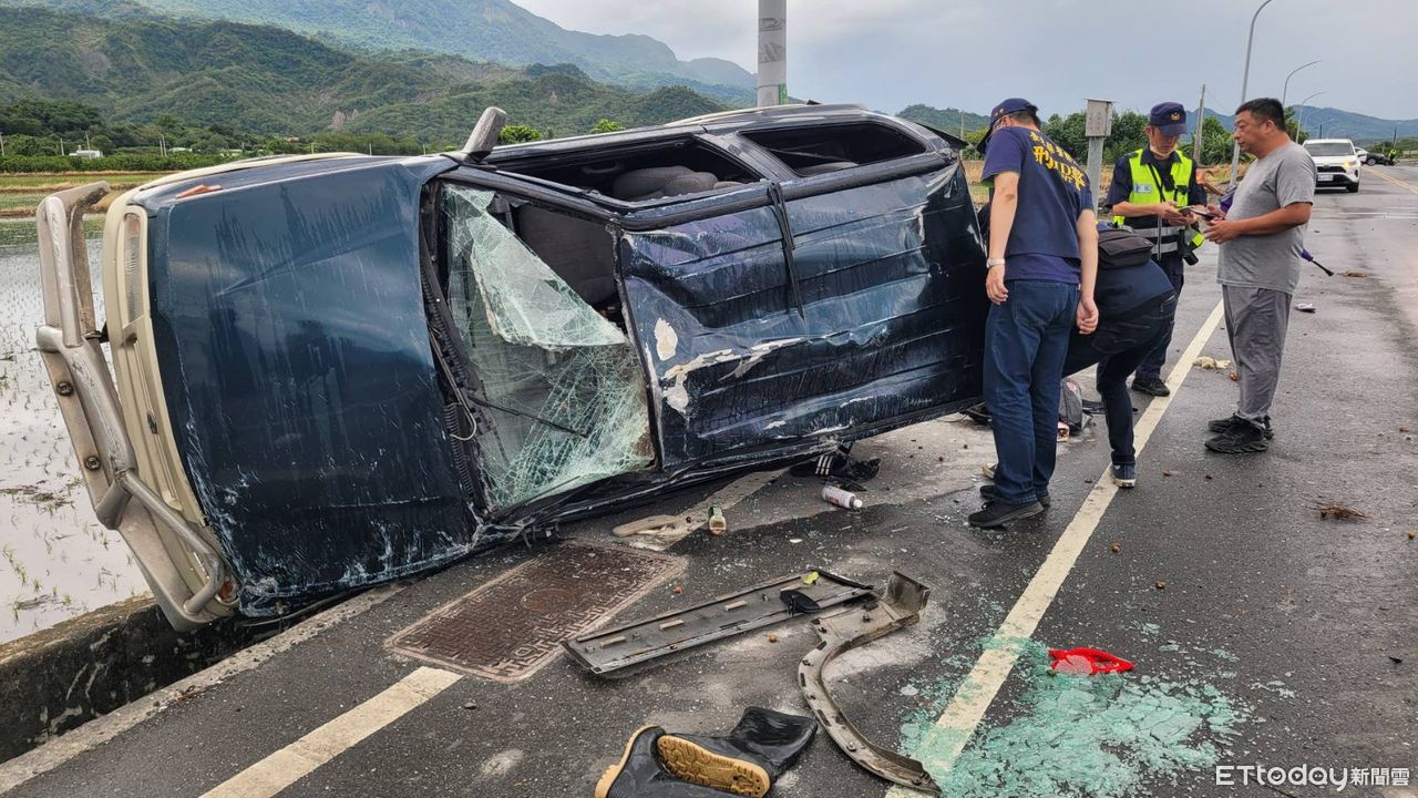 ▲台東小客車不明原因翻覆,3人受傷。(圖/記者楊漢聲翻攝,下同)