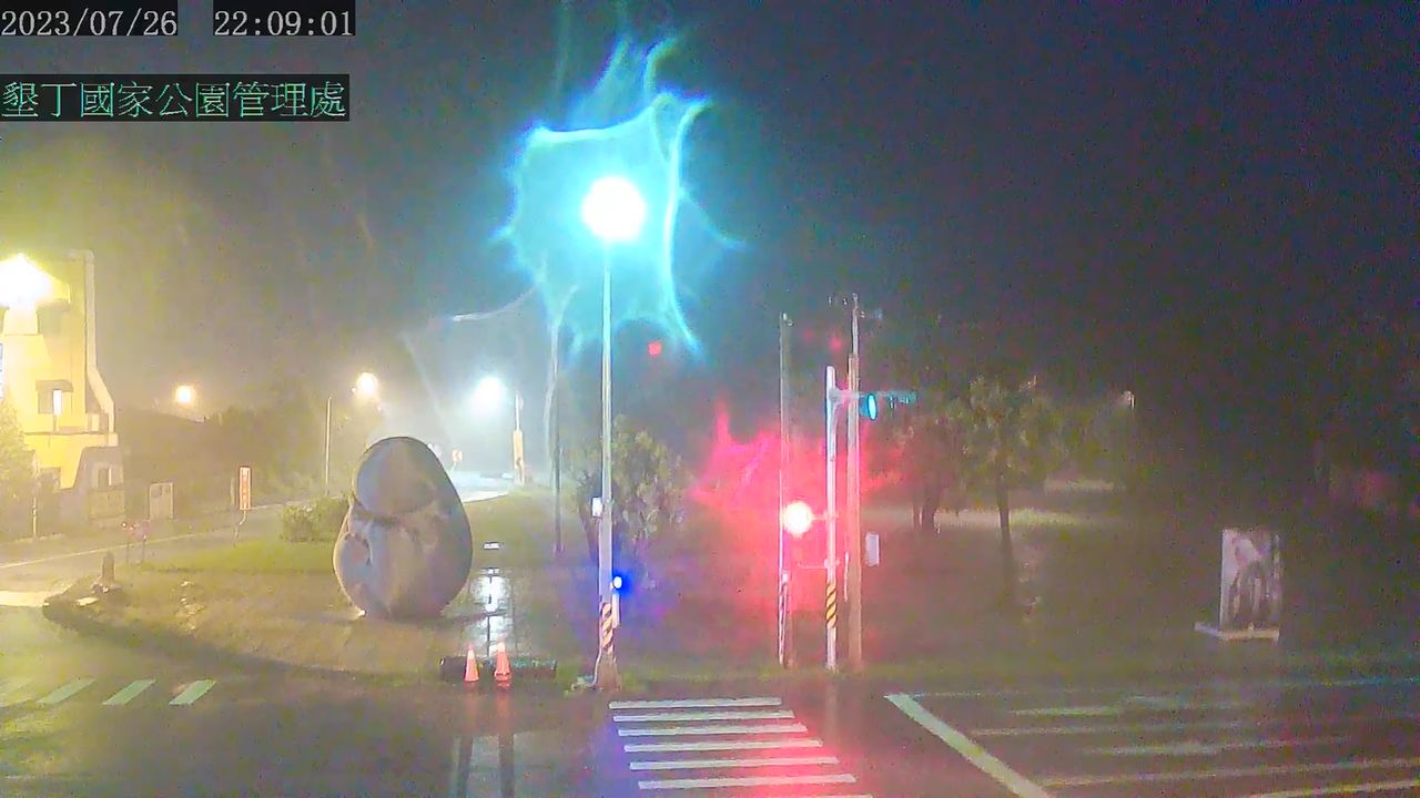 中颱杜蘇芮襲台,全台一共有7個縣市停班停課,其中恆春半島受到的影響,入夜後風雨逐漸加強,而墾丁大街、國家公園管理處的風雨情況也隨之曝光,不但路面十分潮濕,路樹、電線桿與監視器也不斷搖晃,可見風勢十分強勁。