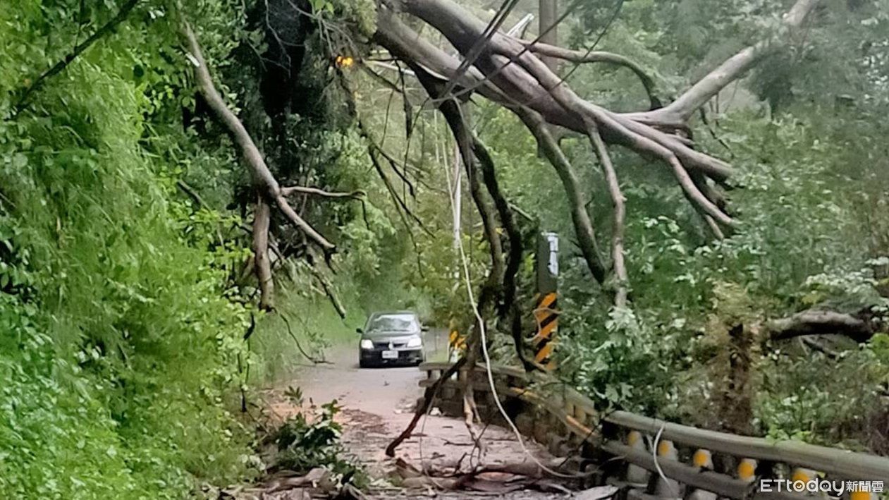 ▲杜蘇芮豪雨害樹倒扯斷電線!高雄620戶停電緊急搶修。(圖/記者賴文萱翻攝)