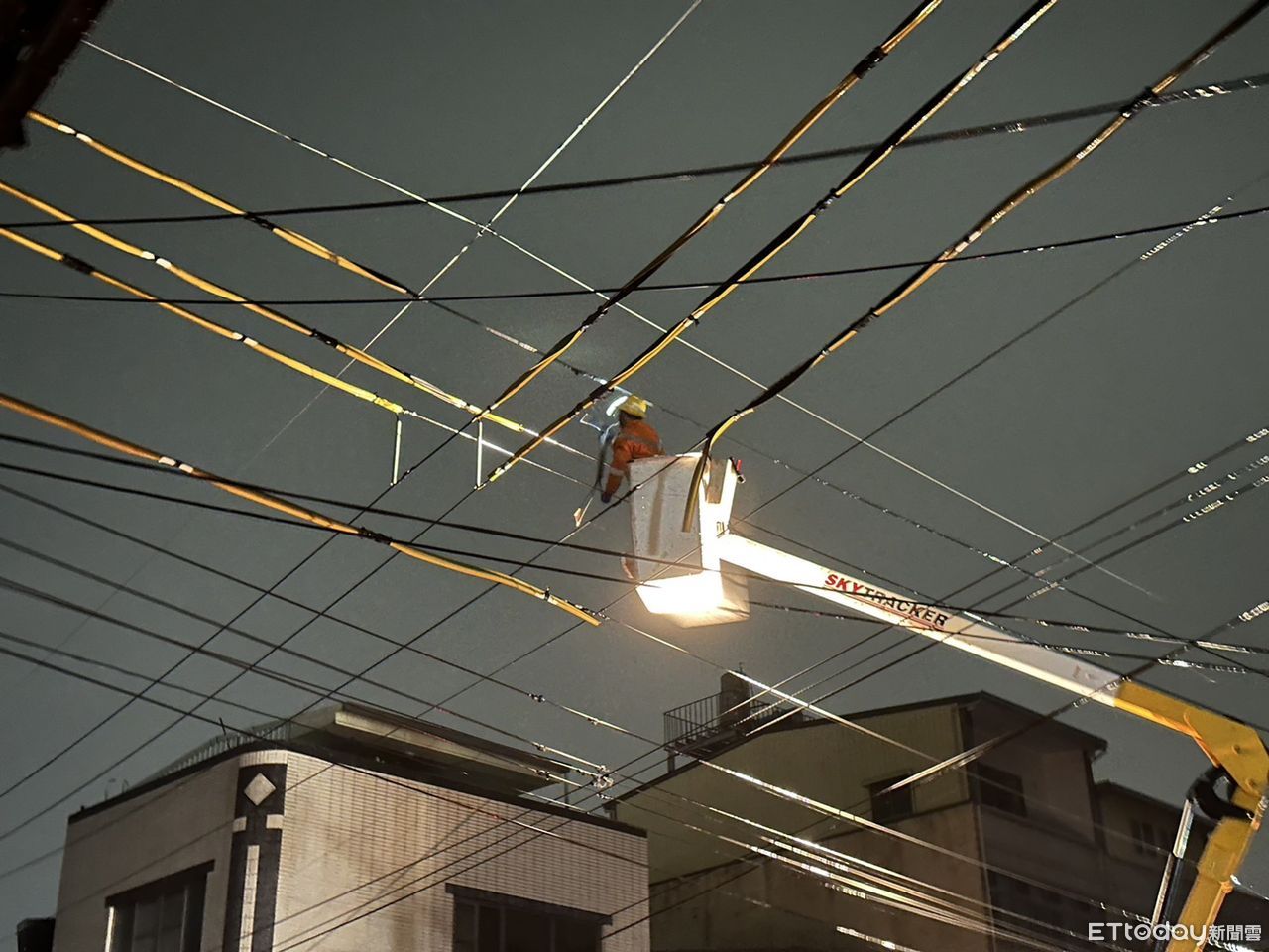 ▲台電人員辛苦冒風雨搶修 。(圖/記者吳奕靖翻攝)