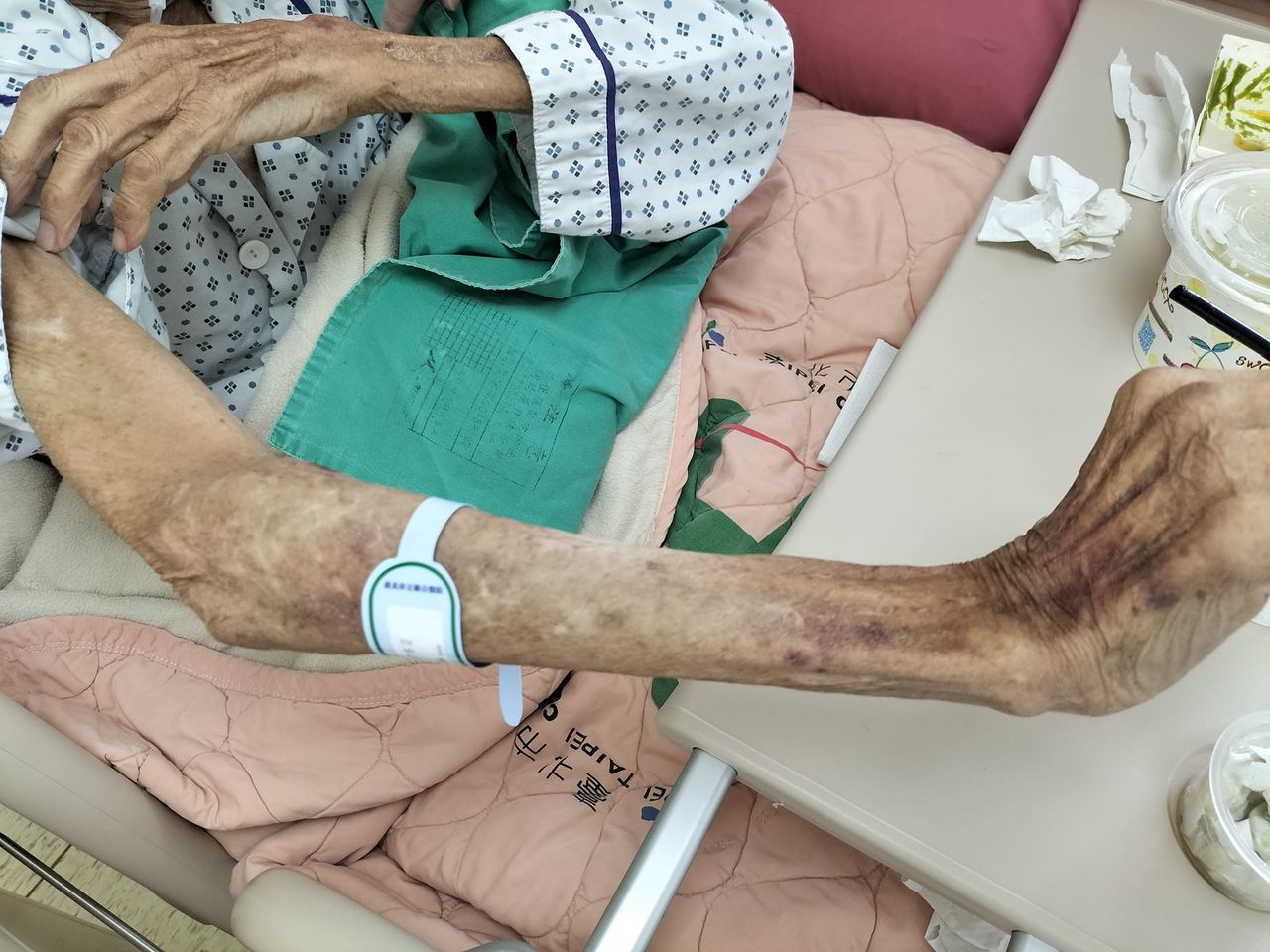 ▲爺爺手臂瘦成竹竿。(圖/翻攝自臉書/蘇一峰)