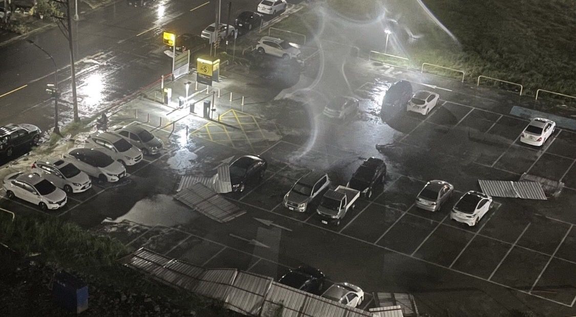 網友貼出一張停車場的照片,遮陽的鐵皮散落一地,現場亂七八糟,最崩潰的是,鐵皮塊直接砸在車上,還有網友貼出戶外照片,許多路段的路樹倒塌,橫躺在馬路上,電線桿也被風吹倒,造成高雄地區多處停電。