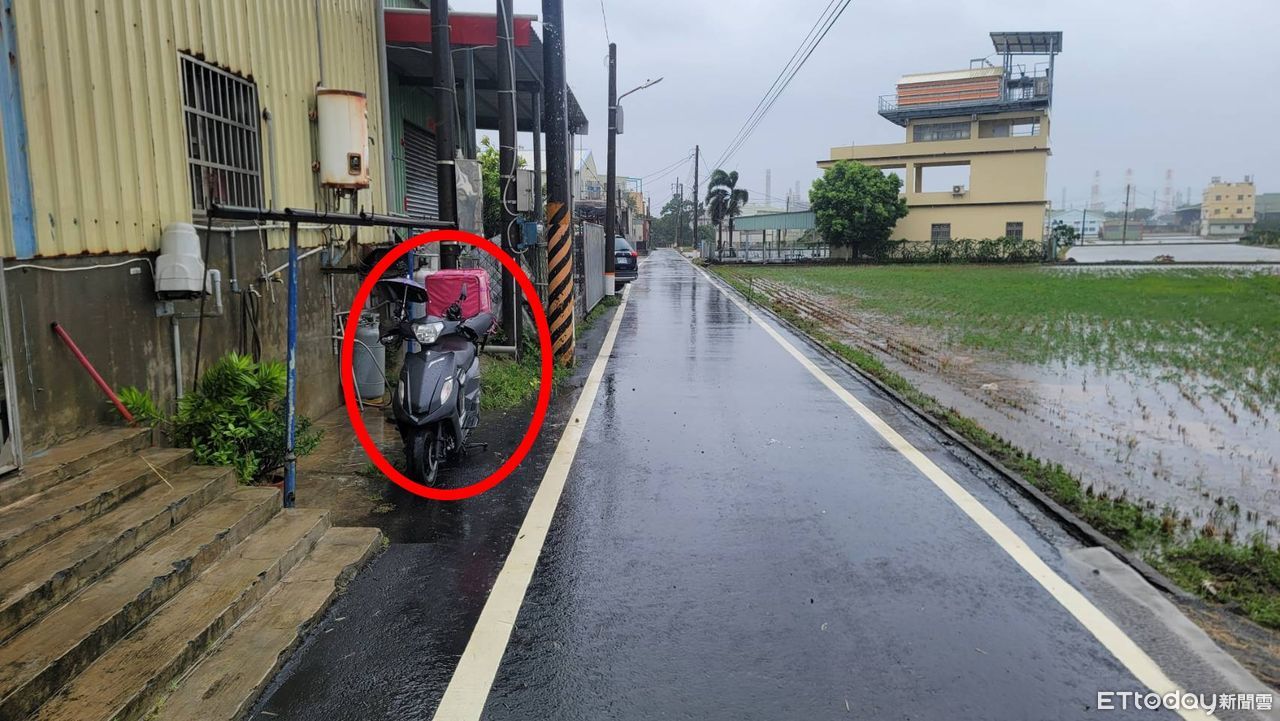 ▲外送員的機車已經被扶起,人被送往醫院 。(圖/記者吳奕靖翻攝)