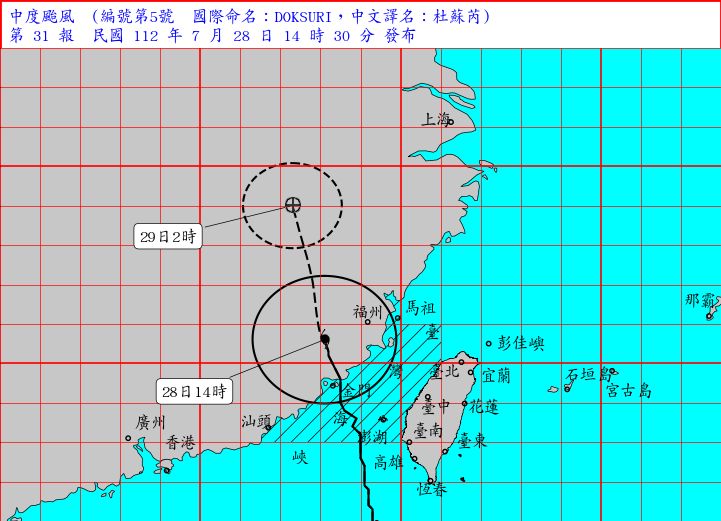 目前金門仍在陸警範圍,台灣海峽、台灣北部海面也在海警警戒區內,不過氣象局表示,若此颱風行徑無特殊變化,預計於今(28)日17時30分解除海上陸上颱風警報。
