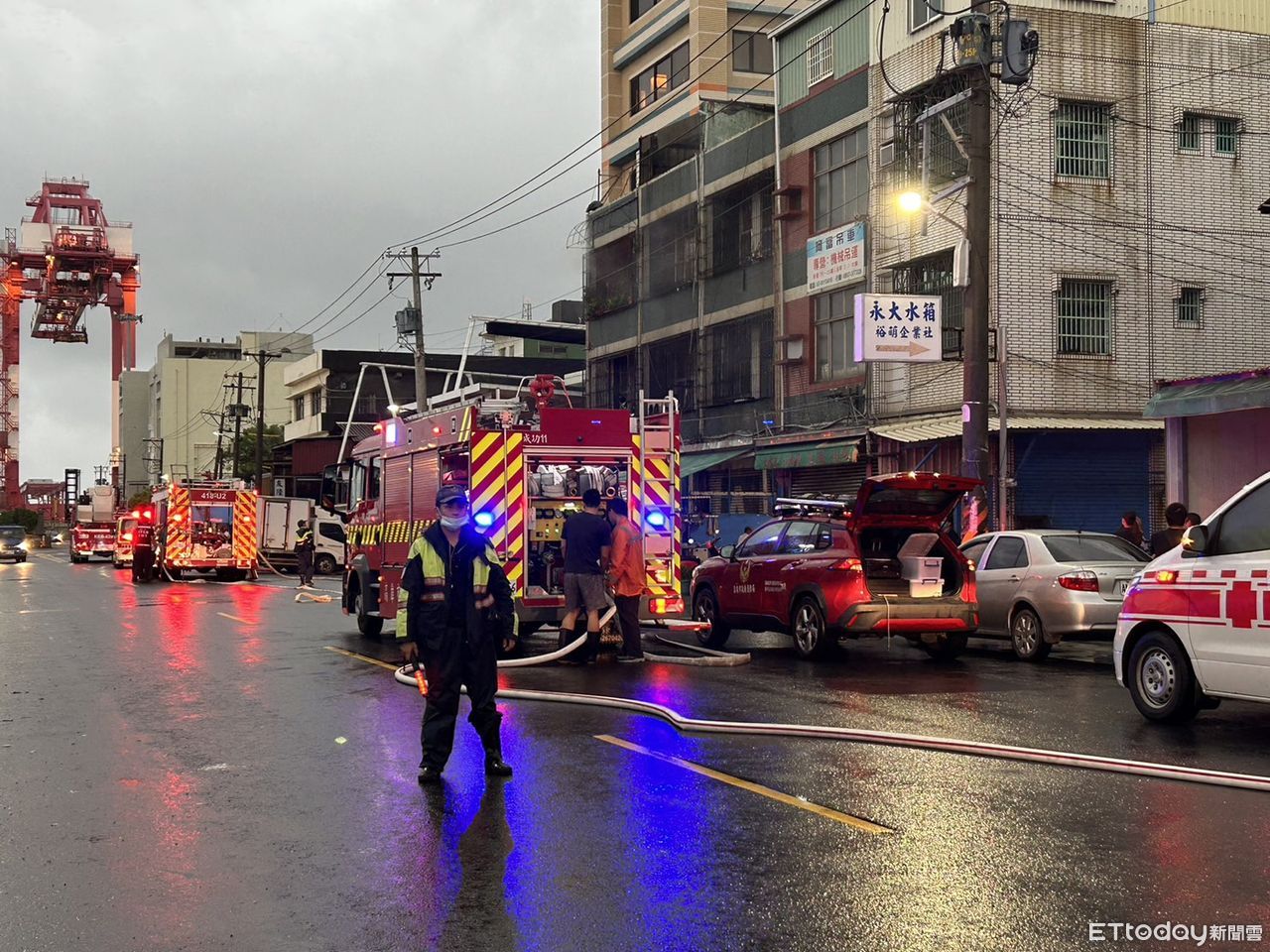 ▲高雄前鎮漁港旁民宅傳出火警,警消趕往救援 。(圖/記者吳奕靖翻攝)