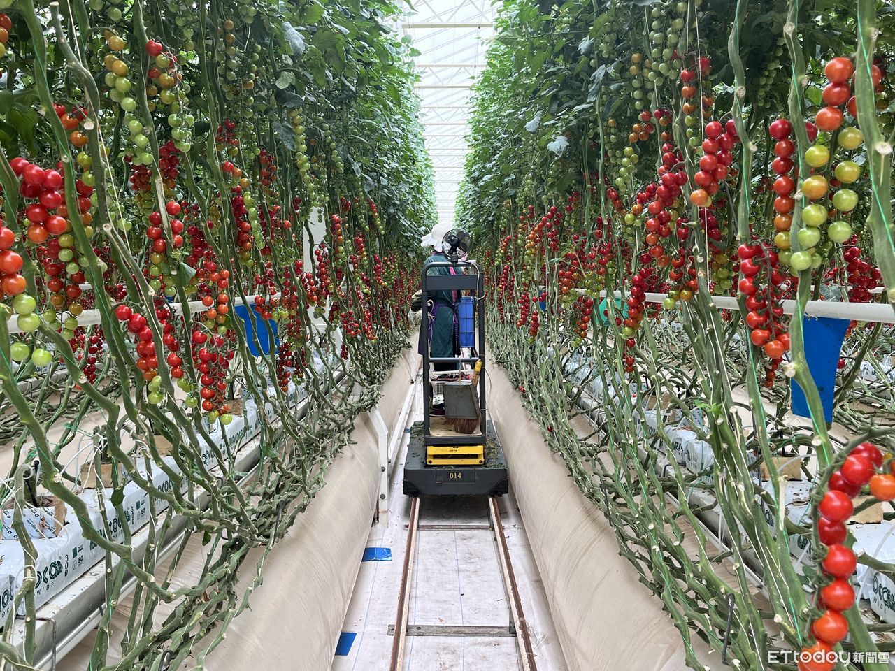 ▲智慧型玻璃溫室內種植大量的高端小番茄。(圖/記者蔡儀潔攝)