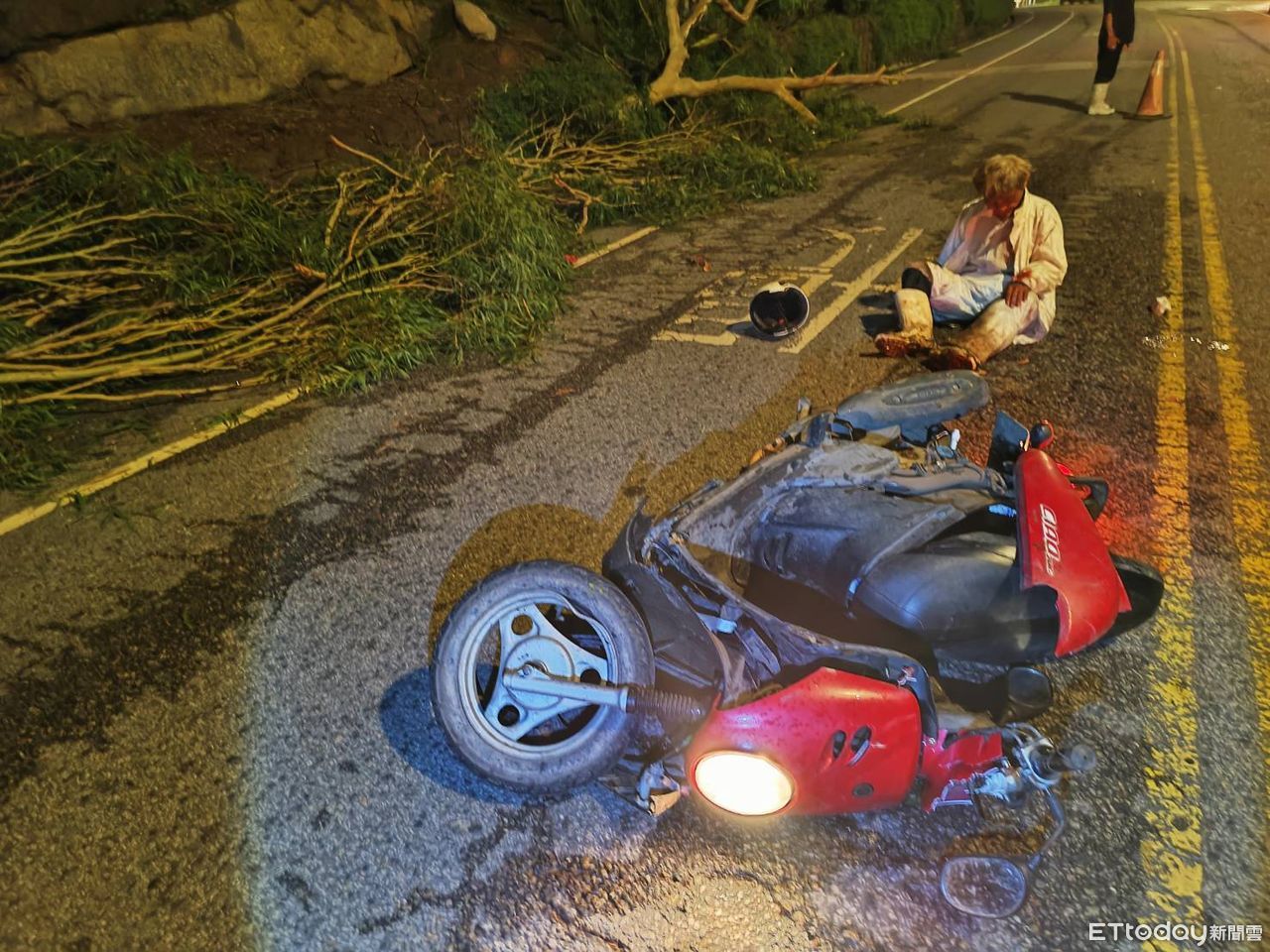 ▲中颱吹倒金門路樹,絆倒騎機車的老翁。(圖/林名揚翻攝)