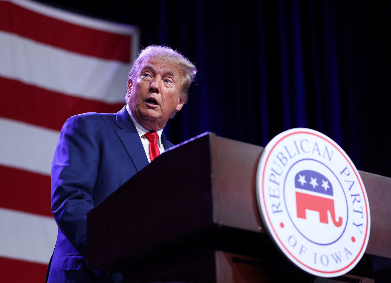▲美國前總統川普29日在愛荷華州出席共和黨的林肯總統誕辰紀念日晚宴。(圖/路透)