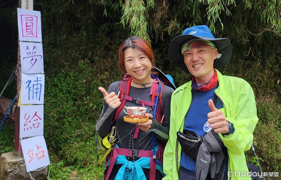 Matt說,因為一直很感謝蘭萱圓了他想參觀玻璃屋的夢,所以也持續關注蘭萱的官網粉絲頁,知道她正在圓玉山夢,於是爬過幾次玉山、了解第二天最是辛苦的他,靈機一動,決定挑個下山必經的亭子。在擺設咖啡器具後,他掛起手寫的《圓夢補給站》海報,原本想說寫《蘭萱奉茶站》,但後來放棄,因為擔心蘭萱覺得太高調。