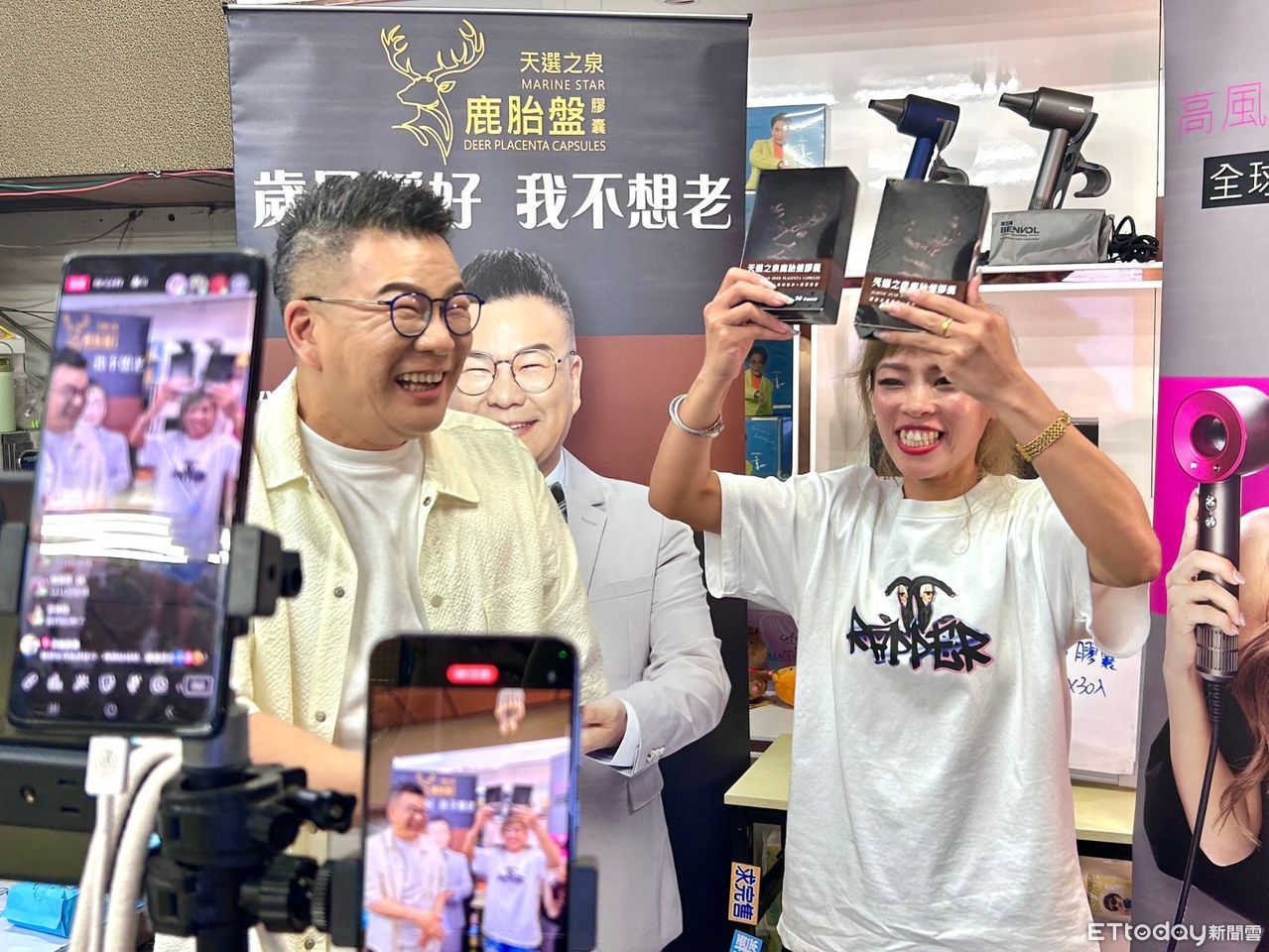 ▲活動現場充滿了綜藝氛圍,沈玉琳以其標誌性的搞笑風格,將整場直播推向高潮,不僅讓粉絲們笑聲不斷,也讓更多消費者對《天選之泉》鹿胎盤膠囊產生了濃厚興趣。(圖/記者蔡佩旻攝)