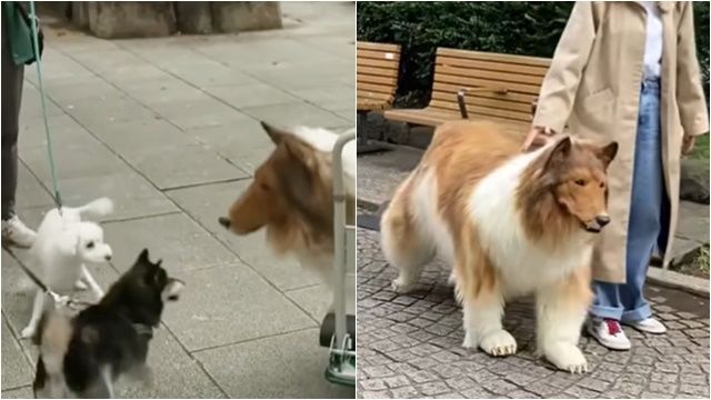 日本一名男子從小夢想變成狗狗,2022年砸下200萬日幣(約新台幣45萬元)量身打造布偶裝,甚至模仿犬隻行為與姿態,終於如願成為牧羊犬。他最近分享第一次出門「被遛」的畫面,只見一頭毛茸茸巨犬在公園裡翻滾、握手,開心與其他狗狗交流,吸引路人駐足圍觀。