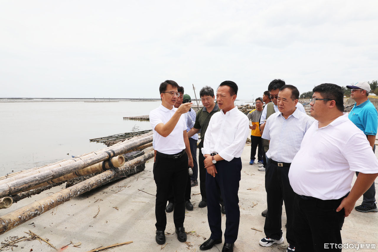 ▲漁業署長張致盛(圖左一) 視察嘉義縣牡蠣災損,嘉義縣啟動救助程序 。(圖/嘉義縣政府提供)