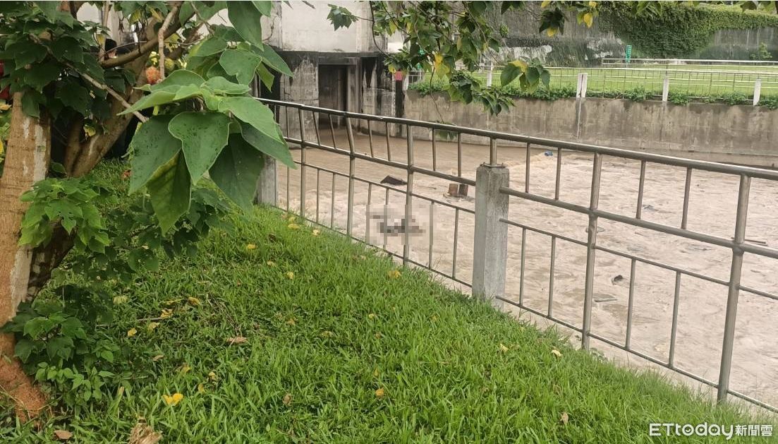 ▲民眾在河堤出水口發現一名男性浮屍,警方正釐清身分。(圖/記者陸運陞翻攝)