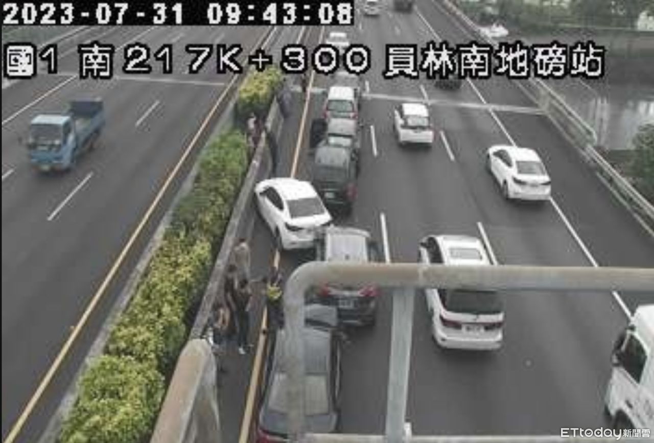 ▲國道1號南下217公里處(員林南地磅站路段)31日上午9時36分發生8車追撞。(圖/高速公路1968,下同)
