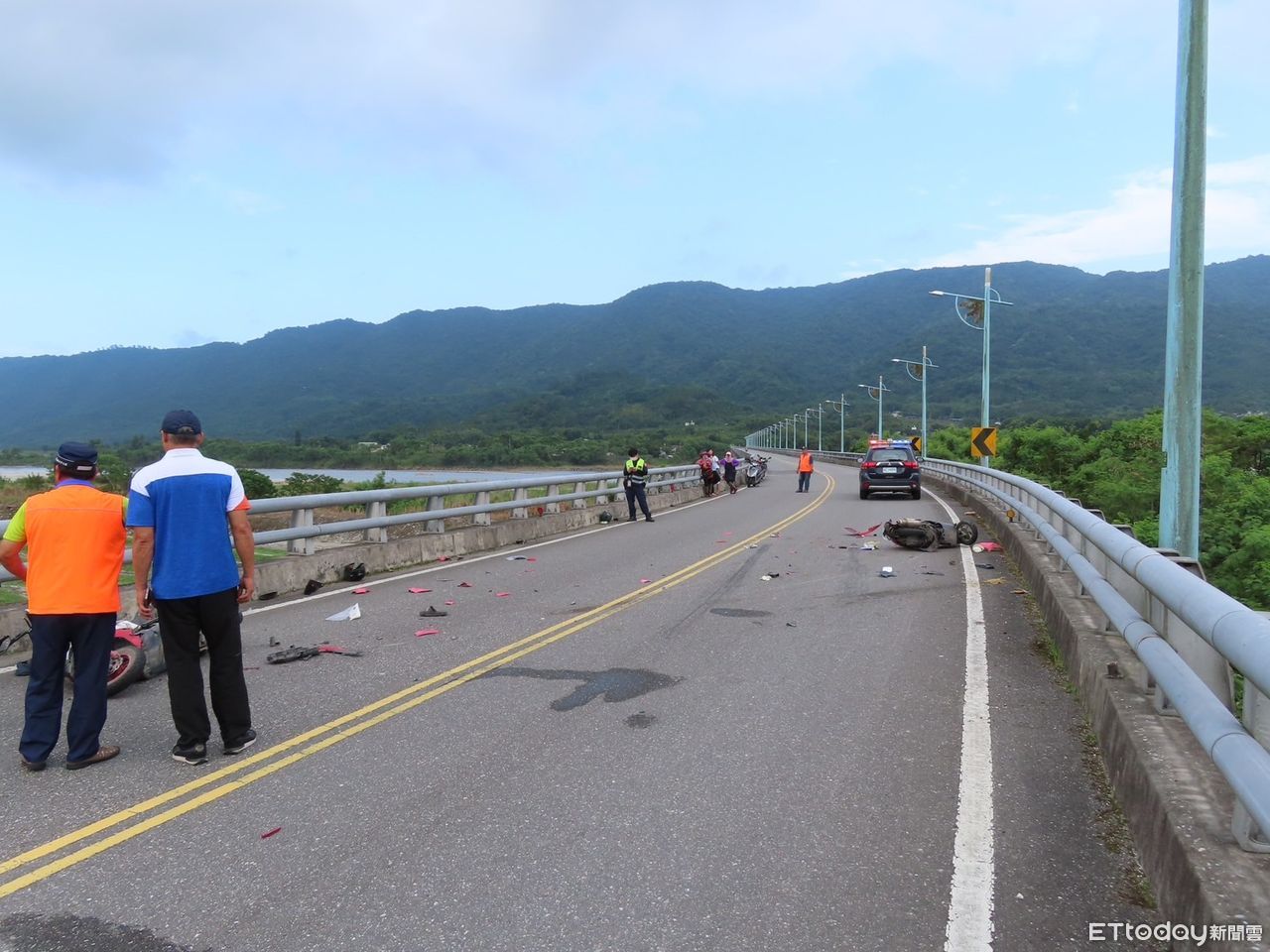 ▲花蓮縣鳳林鎮中興橋發生嚴重機車對撞事故。(圖/記者柯政誟、王兆麟翻攝,下同)