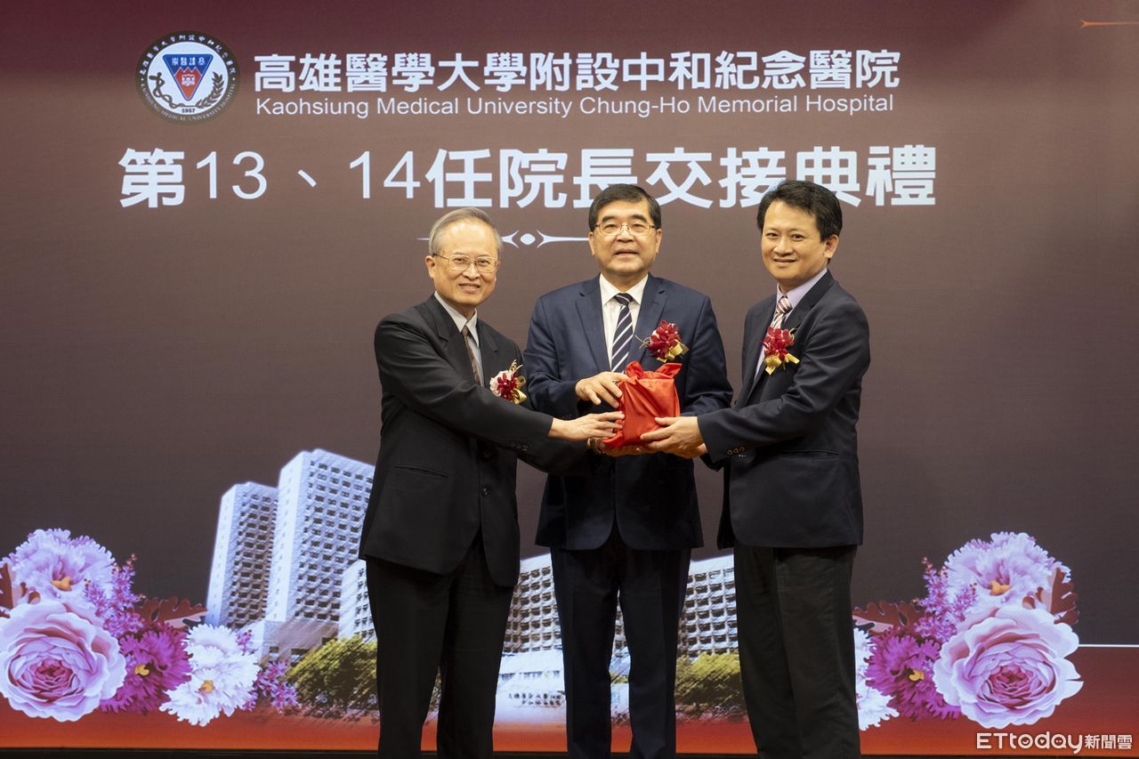▲高醫卸任院長鐘飲文(左),高醫大學校長楊俊毓(中),新任院長王照元(右) 。(圖/記者吳奕靖攝)